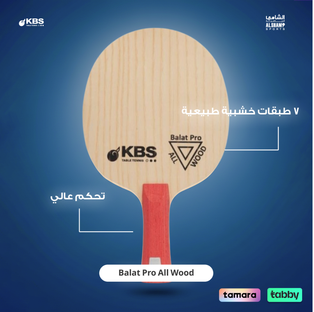 متجر الشامي يقدم لك مضرب كرة الطاولة Balat Pro All Wood من KBS، مضرب خشبي بالكامل مصمم خصيصاً لعشاق اللعب الهجومي المتوازن، يجمع بين الإحساس العالي والتحكم المثالي ليمنحك تجربة لعب احترافية تناسب مختلف المستويات.